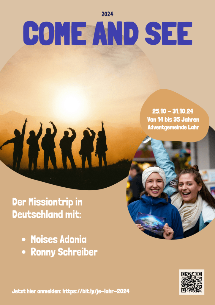 Come and See 2024. Die Jugendevangelisation in Deutschland mit Moises Adonia und Ronny Schreiber (25.10. – 31.10.24) in der Adventgemeinde Lahr. Echte Gemeinschaft mit christlichen…